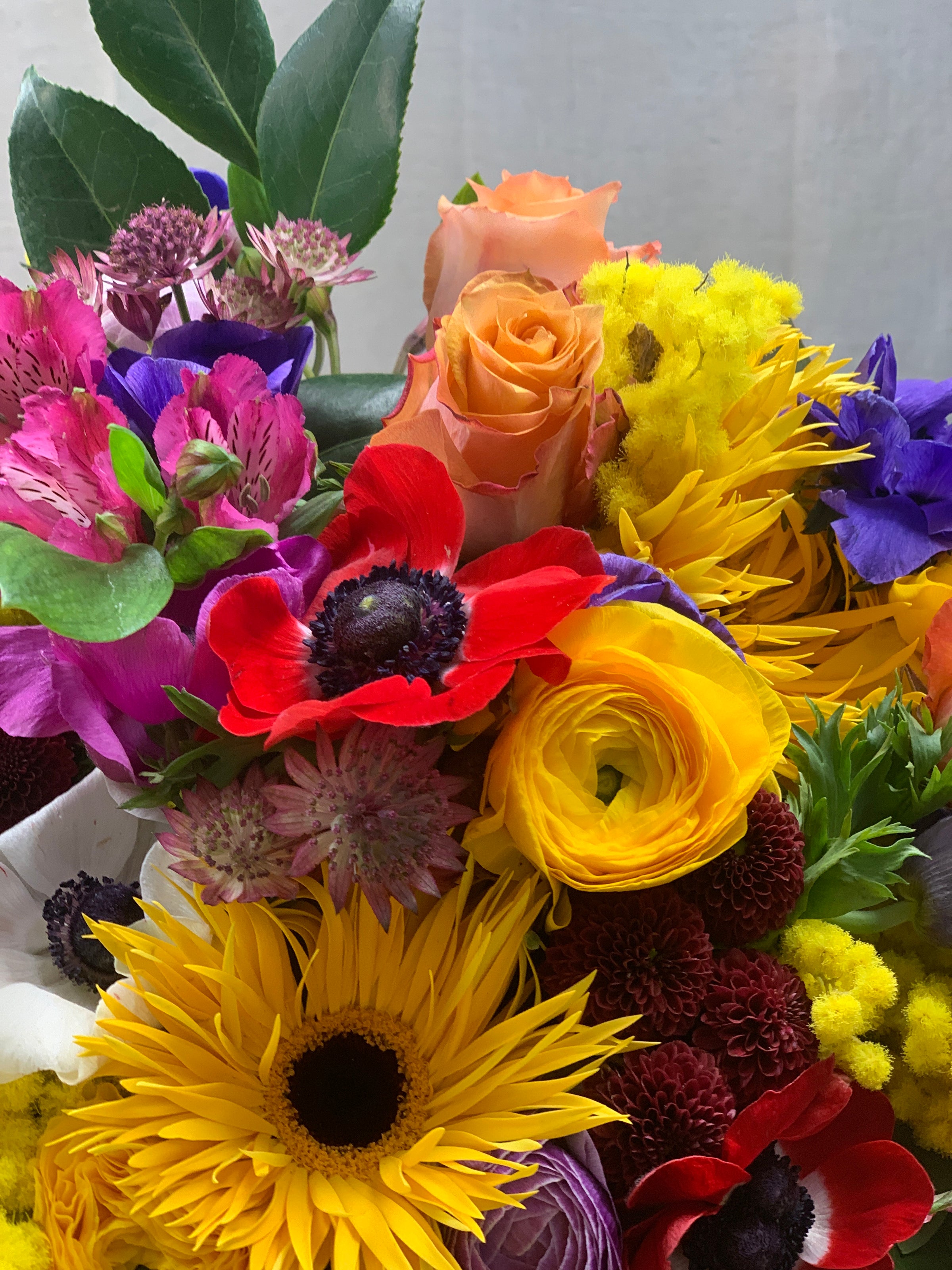 "La primavera è nell'aria e non c'è niente di meglio che festeggiarla con un bellissimo mazzo di fiori misti di stagione, con l'aggiunta della delicata mimosa che donerà al tuo dono un tocco di eleganza. Il nostro mazzo è composto da fiori selezionati con cura, per creare una combinazione di colori e profumi unici che lasceranno un ricordo indimenticabile. Regala questo dono naturale a qualcuno di speciale e fai brillare la loro giornata. -